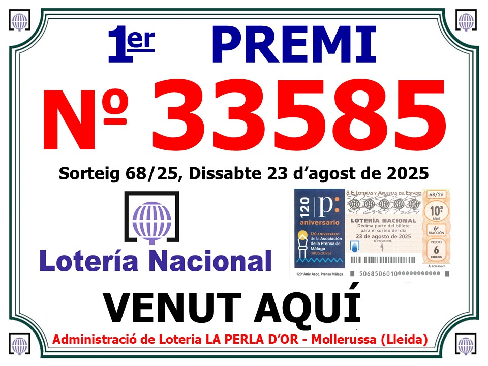 Som l'Administració de Loteries de referència de la comarca i la zona. A la Perla d'Or podràs comprar participacions personalitzades, penyes i realitzar apostes en els principals sorteigs: La Primitiva, Euromillones, Eurodreams, Bonoloto, El Gordo de La Primitiva, la Quiniela, el Quinigol, Lototurf, Quíntuple Plus, Loteria Nacional dijous, Loteria Nacional dissabtes i els sortejos extraordinaris de la Loteria de Nadal i Reis.